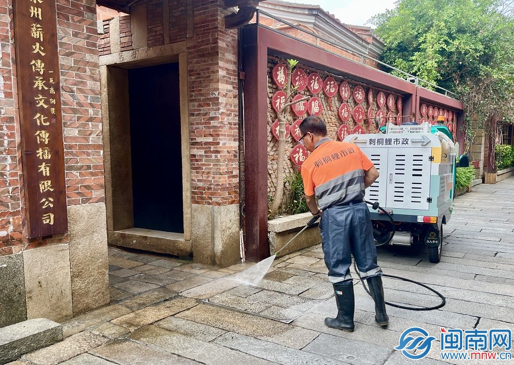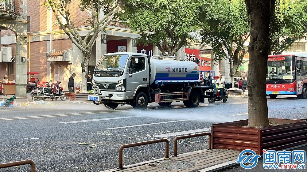 闽南网5月15日讯(闽南网记者 苏毓茹 尤燕姿 吴圳烽 洪泓塬 文/图)早上8 点,阳光洒正在泉州鲤城区新门街,赶着上班、上学的行人脚步渐渐,脚下的面干净清新。然而,正在一个小时前,这里仍是蔬菜摊贩收摊后狼藉满地的气象。浩繁蔬菜批发商贩自每晚 12点起,将摊位转移至新门街面,曲至次日清晨六七点收摊。批发市场的热闹褪去后,卫生的压力随之而来。为此,鲤城区以“机械化设备投入+人工辅帮”的环卫功课模式,实现高效洁净功课。今天早上6!50,记者沿新门街步行看到,蔬菜摊贩连续离场后,街道上遗留着菜叶、塑料袋等垃圾。此时,环卫功课步队连续登场。